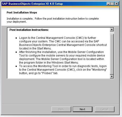 ReplyDeleteWe have done BOXI 4.0 Installation on Red HotLinux. Can you please help me if you have step by step document for post Installation configuration steps with CMC, DB and CMS.